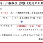 患者様各位 令和8年1月5日より、 皮膚科・片桐一元 教授の診察日が、毎週月曜日へ変更となります。 詳細は下記にてご確認お願いいたします。。