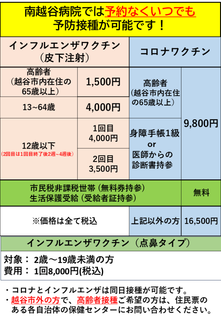 インフルエンザワクチン・コロナワクチンの予防接種が開始となります。